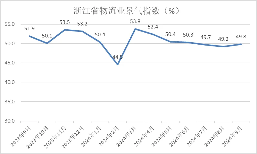 浙江省物流协会发布的最新数据显示,2024年9月全省物流业景气指数为49.81%,较上月微升0.57个百分点,标志着行业在经历一段时间的低迷后呈现出触底回升的态势。节前效应提振物流需求,市场需求企稳回升,行业前景预期总体向好,积极因素逐步累积。然而,有效需求仍显不足,行业内卷现象未根本改变,企业经营环境全面回暖仍面临诸多挑战。